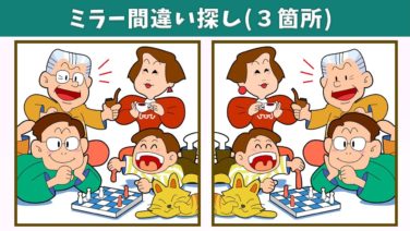 間違い探し 【間違い探し】3つのまちがいを探す難問脳トレ!ミラー版で楽しくアハ体験!【イラスト編】#428