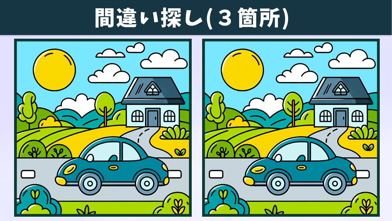 【間違い探し】認知力や記憶力を高める脳トレ難問!動画で簡単・気軽に楽しめるレクリエーション!【クイズ】 間違い探し 2024.07.242024.07.25 間違い探し動画 今回は「【間違い探し】認知力や記憶力を高める脳トレ難問!動画で簡単・気軽に楽しめるレクリエーション!【クイズ】」です! チャンネル登録する!