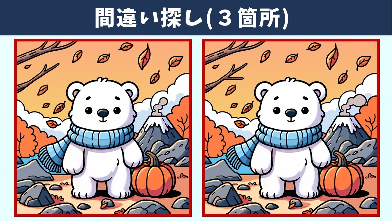【間違い探し】動画で簡単・気軽に脳トレ!左右のイラストにある3つの違いを90秒以内に見つけ出せる!?難しい頭の体操に挑戦!【クイズ】 間違い探し 2024.09.142024.09.15 間違い探し動画 今回は「【間違い探し】動画で簡単・気軽に脳トレ!左右のイラストにある3つの違いを90秒以内に見つけ出せる!?難しい頭の体操に挑戦!【クイズ】」です! チャンネル登録する!