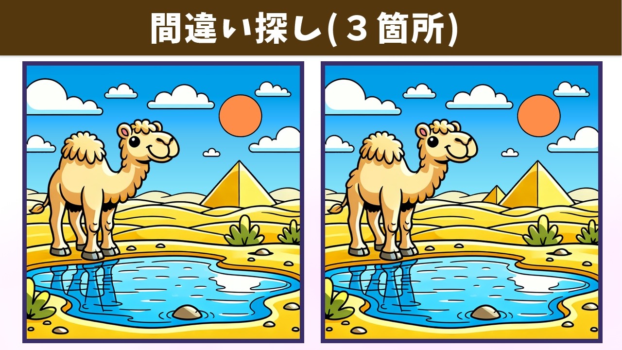 【間違い探し】難問脳トレ!世界中のどなたでも楽しめる動画のレクリエーションで老化防止・記憶力向上!【クイズ】 間違い探し 2024.12.212024.12.22 間違い探し動画 今回は「【間違い探し】難問脳トレ!世界中のどなたでも楽しめる動画のレクリエーションで老化防止・記憶力向上!【クイズ】」です! チャンネル登録する!
