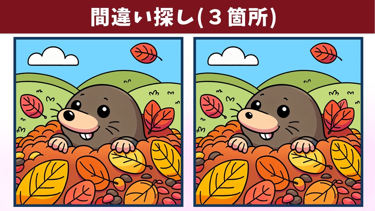 【間違い探し】難問脳トレ!子どもから高齢者まで、誰でも楽しく記憶力向上や老化防止!【クイズ】 間違い探し 2025.01.082025.01.09 間違い探し動画 今回は「【間違い探し】難問脳トレ!子どもから高齢者まで、誰でも楽しく記憶力向上や老化防止!【クイズ】」です! チャンネル登録する!