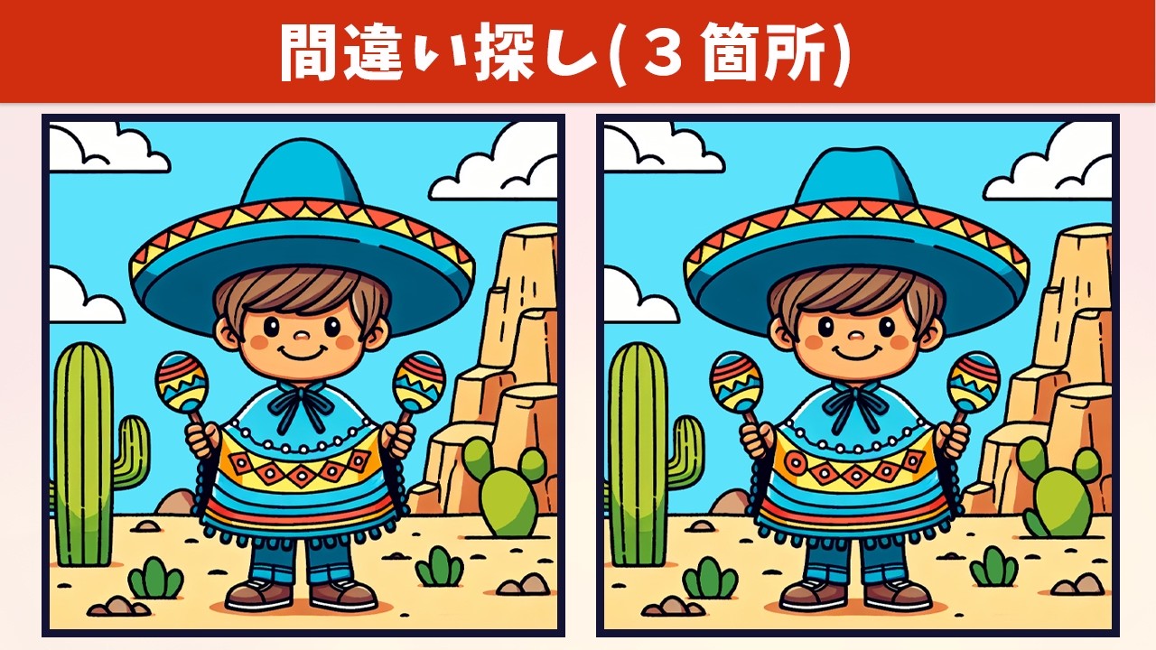 今回は「【間違い探し】イラストの3⃣つの違いを探し出そう!制限時間90秒の難問脳トレで、記憶力・注意力アップ!【クイズ】」です!