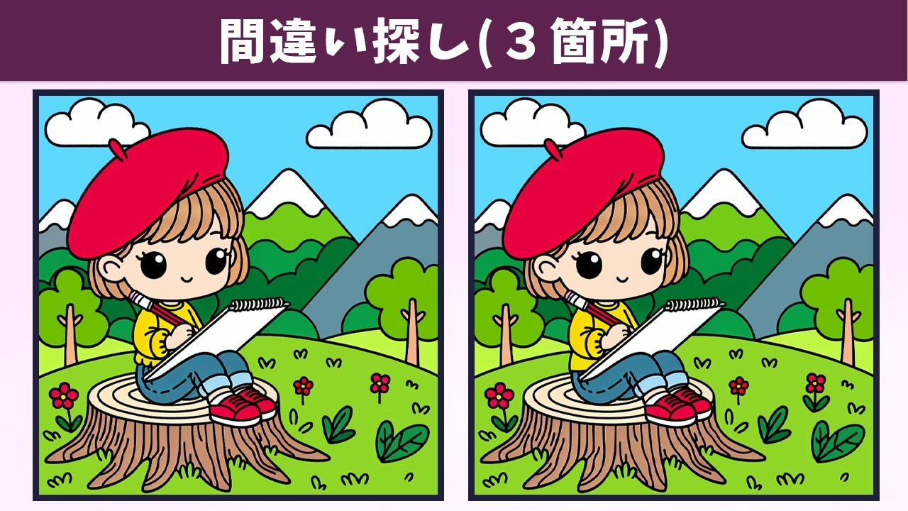 【間違い探し】脳トレを習慣化して、記憶力や認知力を向上!イラストで簡単・気軽に頭の体操!【クイズ】 間違い探し 2025.02.202025.02.21 間違い探し動画 今回は「【間違い探し】脳トレを習慣化して、記憶力や認知力を向上!イラストで簡単・気軽に頭の体操!【クイズ】」です! チャンネル登録する!