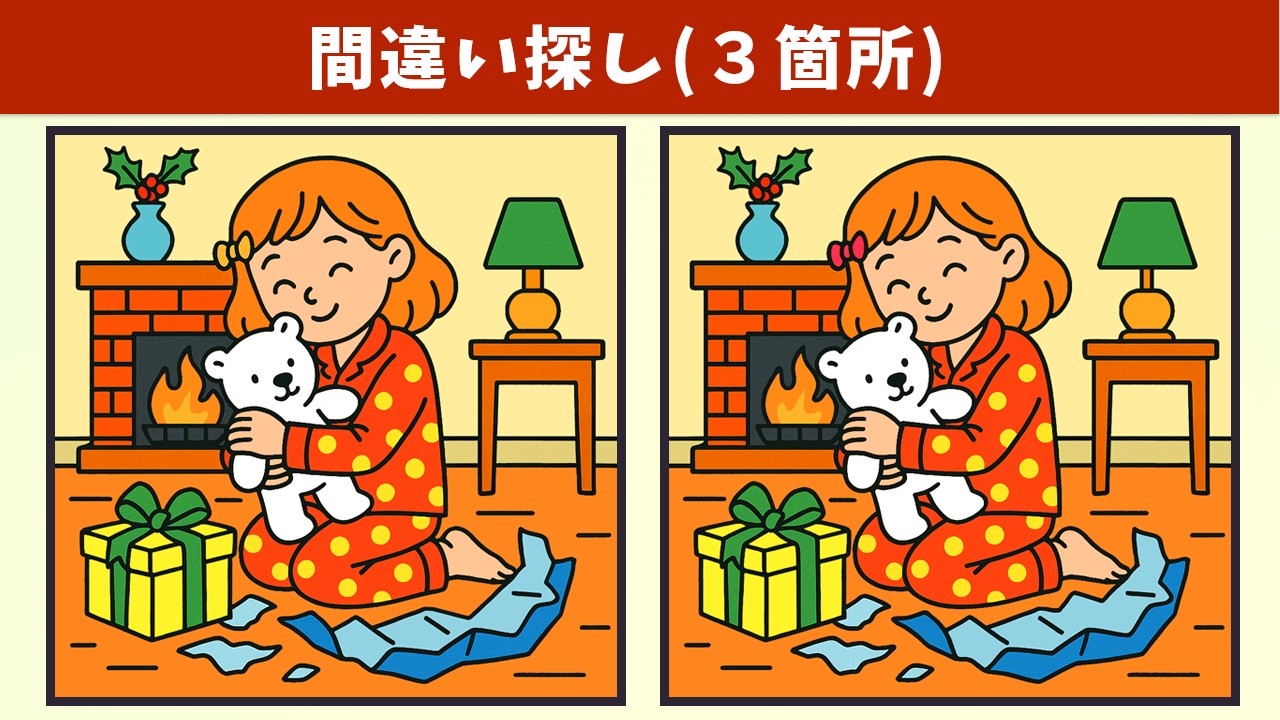 【間違い探し】集中力や注意力を高める脳トレに挑戦!子どもから高齢者まで、楽しくレクリエーション!イラスト編【クイズ】 間違い探し 2025.06.042025.06.05 間違い探し動画 今回は「【間違い探し】集中力や注意力を高める脳トレに挑戦!子どもから高齢者まで、楽しくレクリエーション!イラスト編【クイズ】」です! チャンネル登録する!