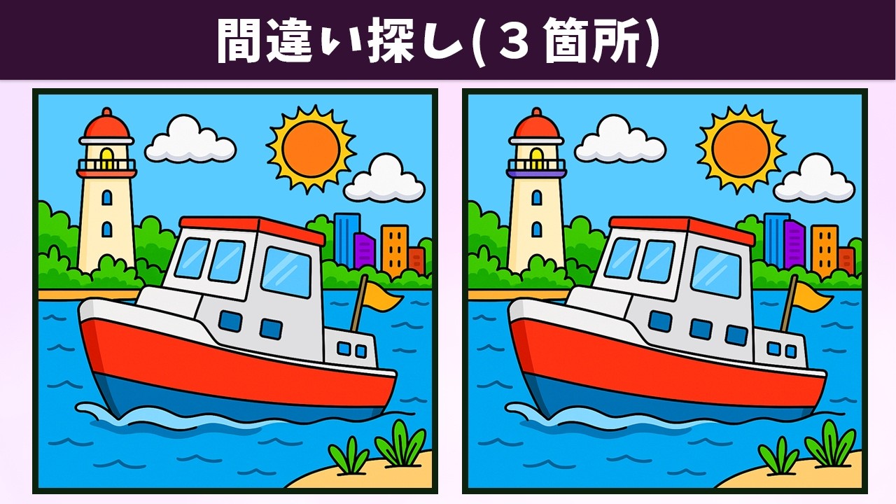 【間違い探し】記憶力向上・老化防止におすすめな脳トレ!制限時間90秒以内に3つの違いを探し出せる!?【クイズ】 間違い探し 2025.06.082025.06.09 間違い探し動画 今回は「【間違い探し】記憶力向上・老化防止におすすめな脳トレ!制限時間90秒以内に3つの違いを探し出せる!?【クイズ】」です! チャンネル登録する!