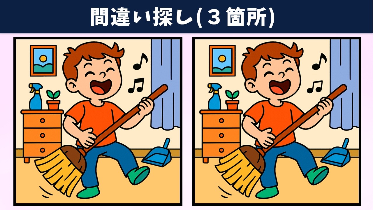 【間違い探し】楽しく脳トレをして、気軽に記憶力向上・老化防止!毎日の習慣におすすめな頭の体操!【クイズ】 間違い探し 2025.07.092025.07.10 間違い探し動画 今回は「【間違い探し】楽しく脳トレをして、気軽に記憶力向上・老化防止!毎日の習慣におすすめな頭の体操!【クイズ】」です! チャンネル登録する!
