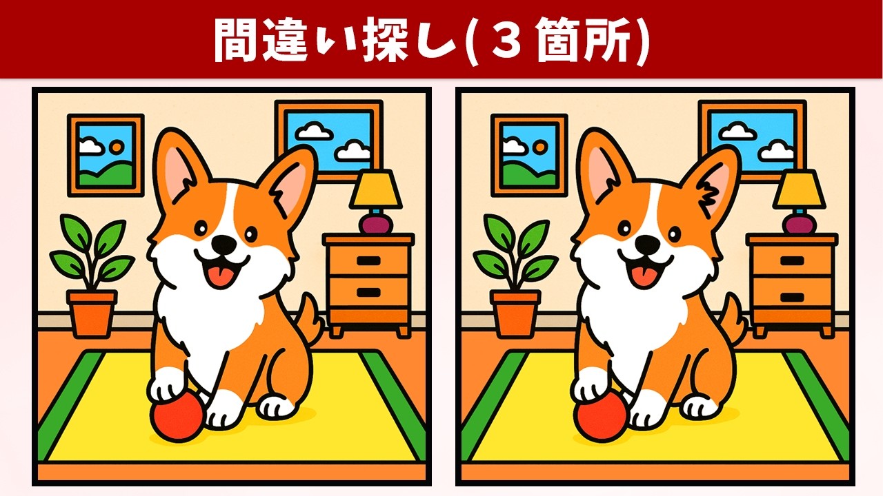 【間違い探し】難しいけど楽しい脳トレ!移動時間やスキマ時間を使って、老化予防・記憶力向上を気軽に習慣化!【クイズ】 間違い探し 2025.07.312025.08.01 間違い探し動画 今回は「【間違い探し】難しいけど楽しい脳トレ!移動時間やスキマ時間を使って、老化予防・記憶力向上を気軽に習慣化!【クイズ】」です! チャンネル登録する!