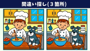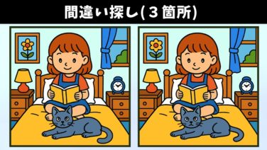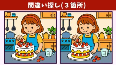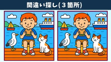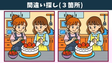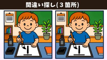 間違い探し 【間違い探し】難問脳トレで、気軽に記憶力向上・老化予防!イラストの3か所の違いを見つけられる!?【クイズ】