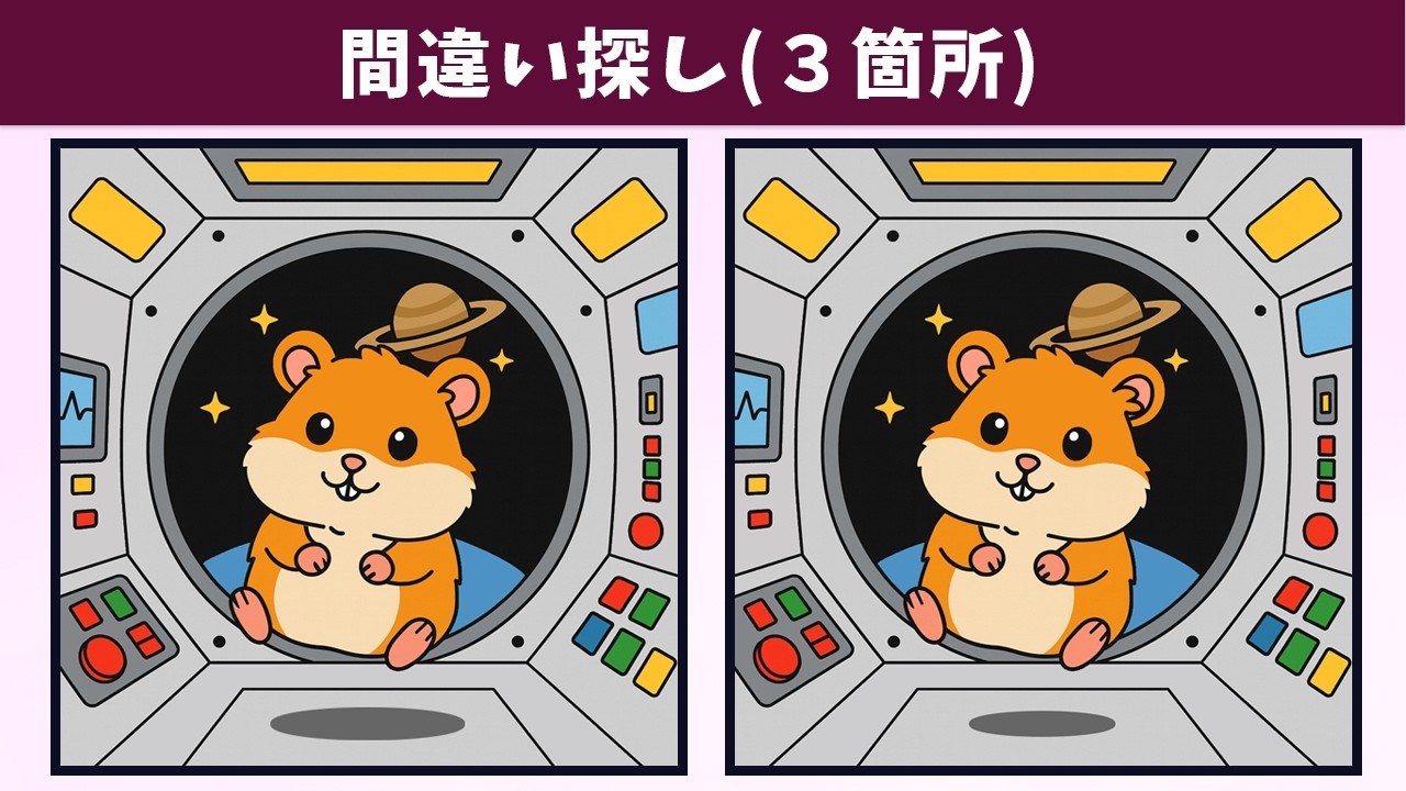 【間違い探し】楽しく気楽に脳トレ!難問イラストの3つの違いを見つけて、記憶力向上・老化防止!日常の習慣におすすめ!【クイズ】 間違い探し 2025.09.252025.09.26 間違い探し動画 今回は「【間違い探し】楽しく気楽に脳トレ!難問イラストの3つの違いを見つけて、記憶力向上・老化防止!日常の習慣におすすめ!【クイズ】」です! チャンネル登録する!