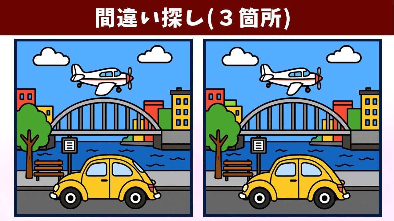 【間違い探し】脳トレ・老化予防!イラストの3つの違いを見つけ出して、頭の体操!習慣化におすすめ!【クイズ】 間違い探し 2025.10.042025.10.05 間違い探し動画 今回は「【間違い探し】脳トレ・老化予防!イラストの3つの違いを見つけ出して、頭の体操!習慣化におすすめ!【クイズ】」です! チャンネル登録する!