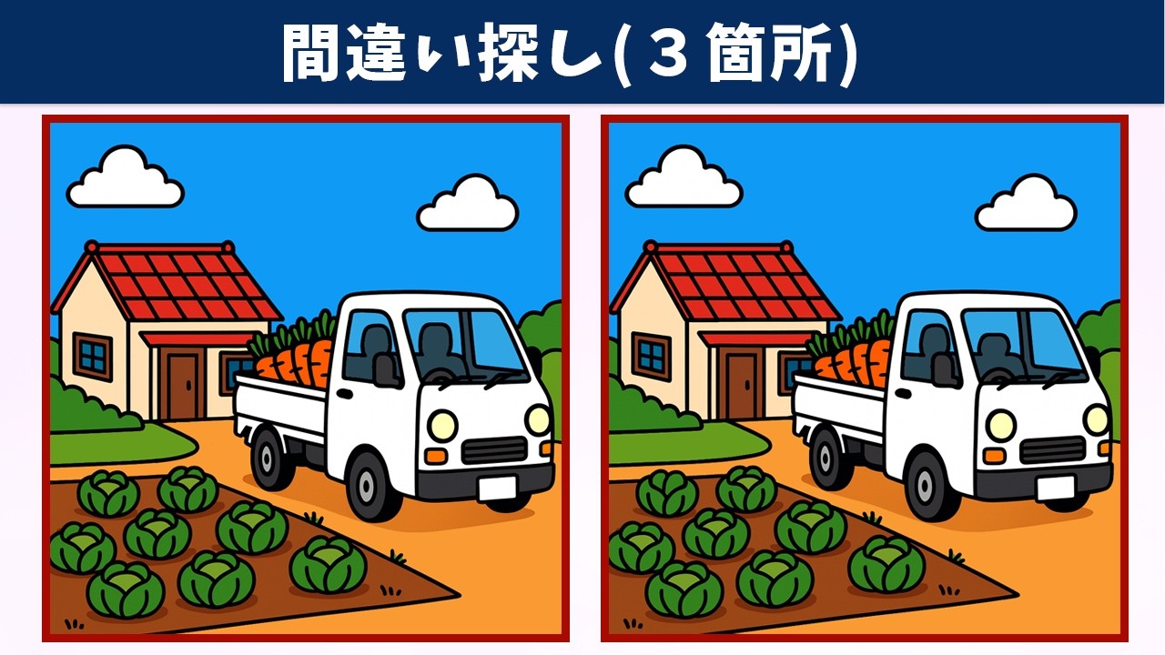 今回は「【間違い探し】脳トレ・老化防止におすすめ!習慣化しやすい動画の頭の体操で、認知力・記憶力アップ!【クイズ】」です!