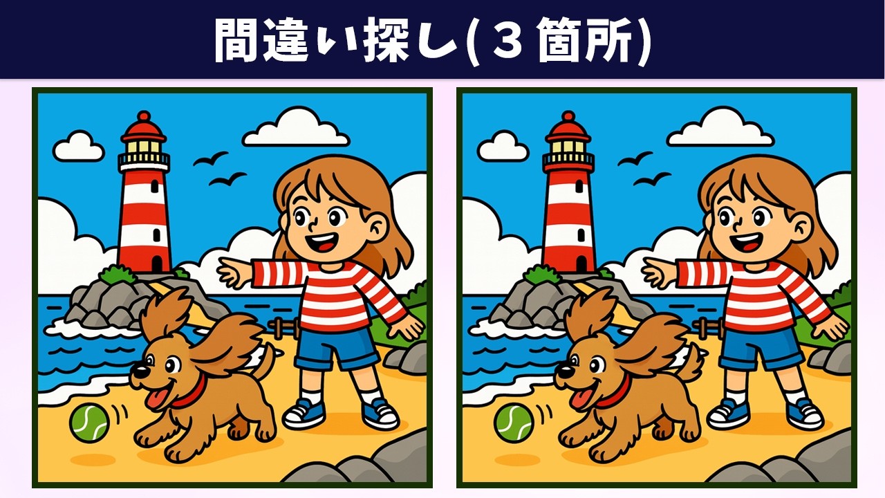 【間違い探し】脳トレでいつまでも若く!3つの違いを見つけて、記憶力や集中力を高めよう!少し難しいイラスト編【クイズ】 間違い探し 2025.10.302025.10.31 間違い探し動画 今回は「【間違い探し】脳トレでいつまでも若く!3つの違いを見つけて、記憶力や集中力を高めよう!少し難しいイラスト編【クイズ】」です! チャンネル登録する!