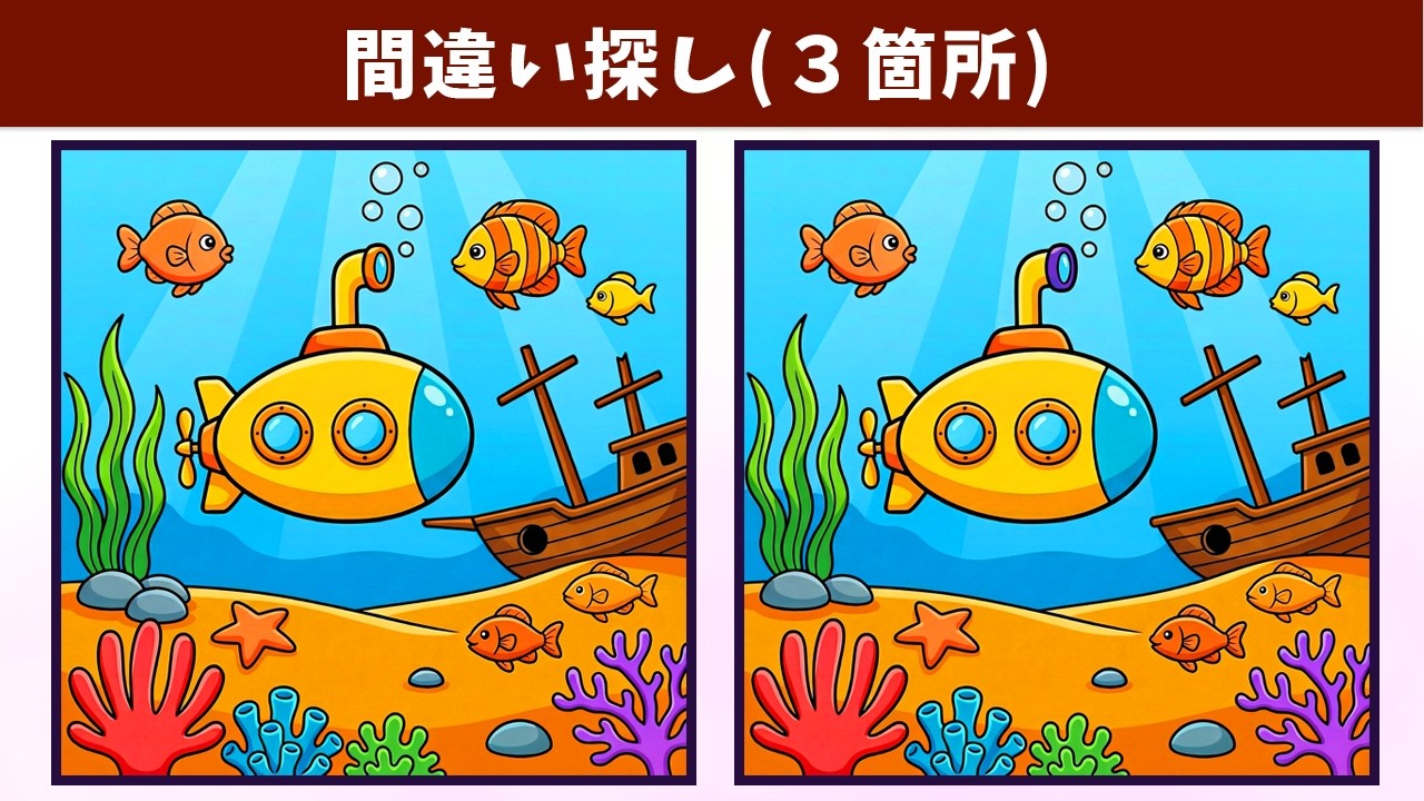 今回は「【間違い探し】楽しく脳トレ!子どもから大人まで、誰でも楽しみながら認知力・記憶力を向上!【クイズ】」です!