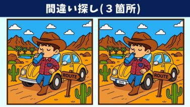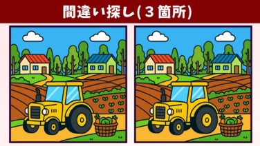 間違い探し 【間違い探し】脳トレや老化防止を楽しみながら!イラストの3つの違いを見つけて、認知力・記憶力を高めよう!【クイズ】